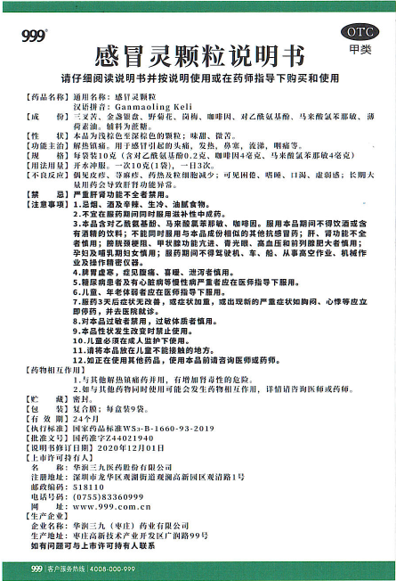 <dt>药品名称</dt><dd> 伤风灵颗粒</dd>