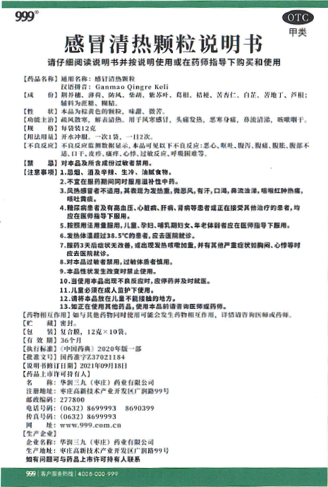 疏风散寒,解表清热。用于风寒伤风,头痛发热,恶寒身痛,鼻流清涕,咳嗽咽干。