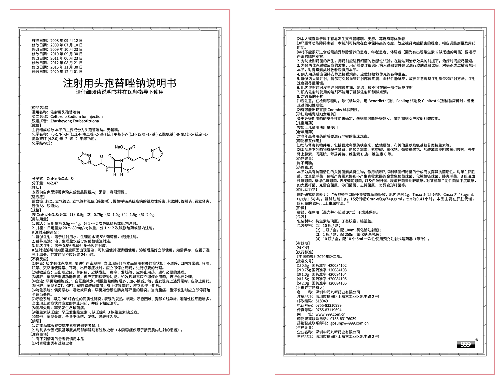 以上说明书为国家药品监视管理局批准的最新版本。