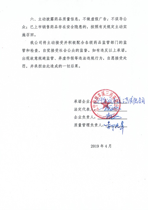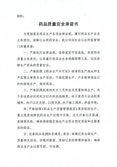 药品质量清静允许书
